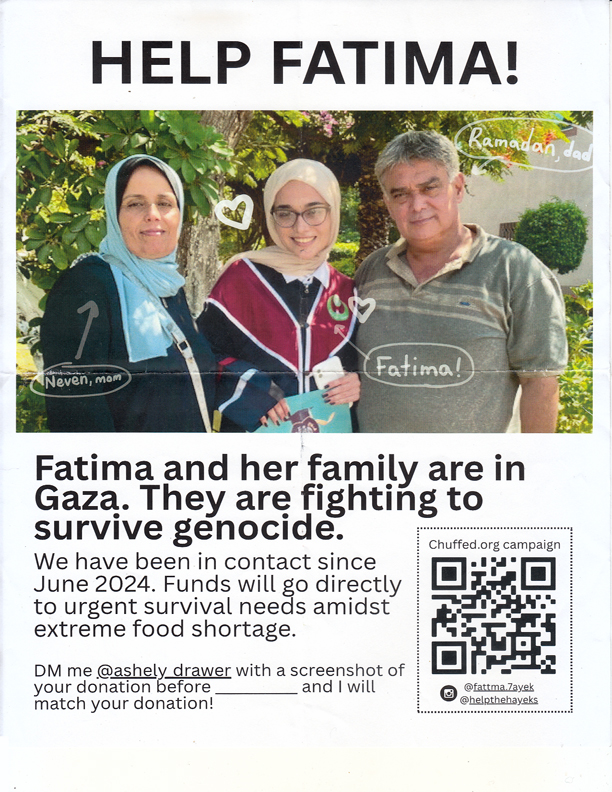 HELP FATIMA! Fatima and her family live in Gaza. They are fighting to survive genocide.
